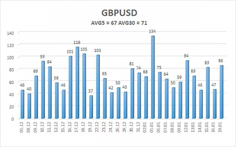 Валютная пара GBP/USD в понедельник также торговалась достаточно спокойно, несмотря на небольшое падение доллара США. Однако мы ждем не «небольшое падение доллара», а очень даже большое. Рынок продолжает игнорировать большую часть новостного потока, и ничего поделать с этим нельзя. Но новостной фон от этого не становится «нейтральным», «скучным» или «в пользу американской валюты». На выходных Дональд Трамп заявил о повышении торговых пошлин для Германии, Швеции, Норвегии, Дании, Франции, Финляндии, Великобритании, Нидерландов. По словам Трампа, Америка долгие годы субсидировала Данию, не взымая с нее никаких платежей или тарифов, поэтому теперь Копенгаген должен вернуть долг. В виде самого большого острова на планете. Вот так легко и просто. Также одиозный президент-республиканец сообщил, что безопасность всего мира зависит именно от острова Гренландия, который в последние десятилетия не выполнял никаких геополитических функций. Но Трамп считает, что Россия или Китай(которые тоже никогда не высказывали свои претензии на эту территорию) могут попытаться захватить остров, а Дания и весь Евросоюз ничего не смогут противопоставить этому. Поэтому Вашингтон «готов взять на себя бремя по защите» атлантического региона и, собственно, самой Европы. Но для этого Гренландия должна стать частью США. Напомним, что ранее с похожим «щедрым» предложением Трамп обращался к Канаде, считая и ее своей территорией. Новые тарифы для стран-изменниц будут составлять 10%, но мы уверены, что это лишь самое начало нового витка торговой войны. Следует понимать, что пошлины для Трампа – это инструмент давления на оппонента, средство для достижения цели. Если 10%-ые пошлины не сработают, Трамп повысит их до 50%, не взирая на наличие торговых соглашений. И так до бесконечности. Европа и Великобритания уже разрабатывают пакеты ответных торговых мер и, возможно, хотя бы в 2026 году осознают, что торговая сделка с Трампом не гарантирует абсолютно ничего. Вчера – вселенская несправедливость к Америке, сегодня – Гренландия, завтра – Испания, Италия или Греция, которые являются «исконно американскими землями» или же задолжали Америке на 500 лет вперед. Следует также отметить, что Лондону и Брюсселю на самом деле есть, чем отвечать Трампу. Британия остается одним из крупнейших финансовых центров мира, Евросоюз – это огромная и богатая территория. Уже сейчас в Европе рассматривают возможности возвращения пошлин на товары из США общей суммой почти на 100 млрд $. Также в Европе активно обсуждается активация механизма противодействия принуждению, который предполагает ограничение на инвестиции и экспорт услуг. Удар может прийтись на американские технологические компании. Однако страны ЕС вновь демонстрируют свою мягкотелость, так как абсолютное большинство стремится сохранить диалог с Дональдом Трампом и решить проблему мирным путем. Нам непонятно, как можно решить проблему мирным путем, но если Европа и Британия вновь предпочтут договориться вместо того, чтобы действовать по принципу «око за око», то на Гренландии все не закончится. Средняя волатильность пары GBP/USD за последние 5 торговых дней составляет 67 пунктов. Для пары фунт/доллар это значение является «средним». Во вторник, 20 января, таким образом, мы ожидаем движения внутри диапазона, ограниченного уровнями 1,33