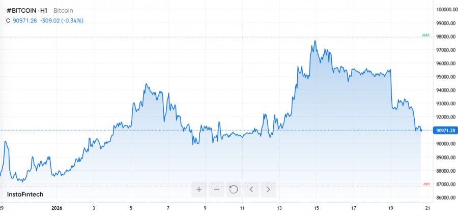 Крупнейшая криптовалюта мира по-прежнему находится на 36% ниже своего исторического максимума на уровне $126 080, зафиксированного в октябре 2025 года. Совпадение падения с бурной геополитической ситуацией, в частности обострением тарифных угроз от президента Трампа в адрес Европейского союза и представителей НАТО, добавляет рынку нервозности.