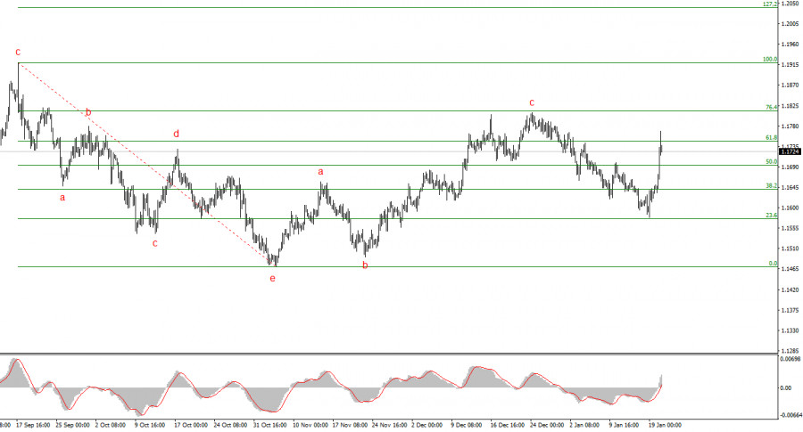 Если ответить на этот вопрос коротко, то только новым падением. Напомню, что в первой половине прошлого года основным фактором падения американской валюты выступала именно торговая война, которую Дональд Трамп начал по всему миру. Даже денежно-кредитная политика ФРС, ЕЦБ и Банка Англии играла лишь фоновое значение для участников рынка. Иначе в первой половине 2025 года европейская валюта не сумела бы подняться в цене против доллара почти на 15%. В это время ЕЦБ активно снижал процентные ставки. Во второй половине прошлого года рынок устал продавать доллар и взял паузу, которая длится до сих пор. Однако событий в мире, требующих реакции рынка, меньше явно не стало. Напомню, что в сентябре ФРС возобновила цикл смягчения денежно-кредитной политики, в октябре в США начался рекордный по срокам «шатдаун», также в октябре Дональд Трамп объявил о новых торговых пошлинах. Поэтому даже во второй половине ушедшего года участники рынка имели все основания продолжать распродажи доллара. Кстати, в этот период времени ЕЦБ уже сохранял ставки на одном уровне. В новый год американская валюта зашла в хорошем настроении. Несмотря на провальное состояние рынка труда США, спрос на доллар потихоньку рос в последние несколько недель. Однако Трамп начал новый год так, как подобает лидеру всей планеты. Сначала был произведен захват Николаса Мадуро, президента Венесуэлы, затем Трамп пригрозил военными интервенциями практически всем странам Латинской Америки. После чего очередь дошла до Гренландии, которую Трамп хотел заполучить еще в прошлом году. Никто Гренландию Трампу отдавать «за спасибо» не намерен, и в этот раз европейцы имеют возможность ответить американскому президенту с позиции силы. Тем более, что Трамп сам решил в очередной раз выложить на стол свои козыри и воспользоваться зависимостью других государств от американского рынка. И ввел торговые пошлины для ряда европейских стран на дополнительные 10%. Евросоюз пока взял паузу на размышления, так как любое решение должно быть одобрено Европейским парламентом и Европейской комиссией. А все это очень небыстро. Однако, если пошлины действительно начнут действовать с 1 февраля, Брюсселю не останется ничего иного, кроме как отвечать своими пошлинами или другими ограничениями для Америки и ее компаний. В этом случае начнется новый раунд торгового противостояния, в котором пострадают, как Европа, так и США. А еще – доллар. Обратите внимание на другие мои статьи: Анализ EUR/USD. 20 января. Евросоюз и США не хотят жить дружно