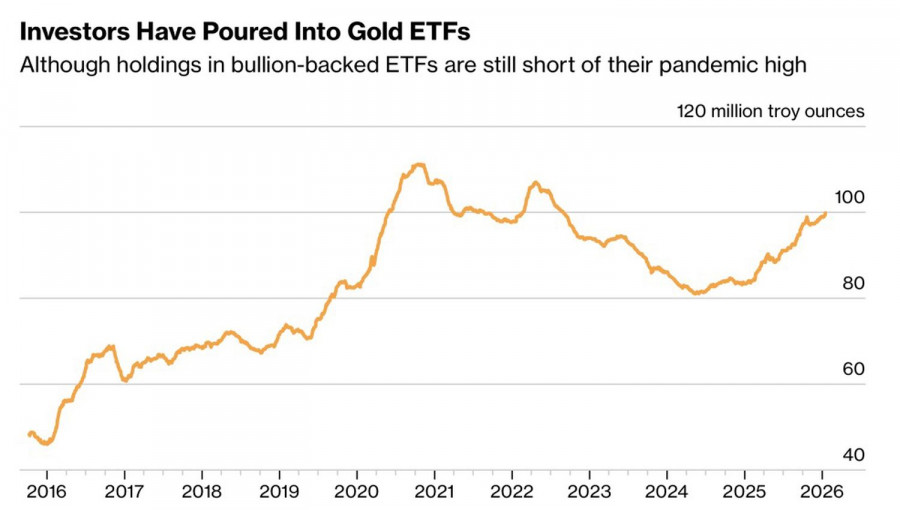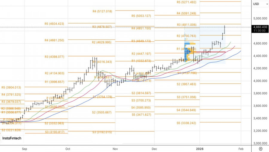Доллар США начал за здравие на фоне паузы в цикле ослабления денежно-кредитной политики ФРС, но может закончить за упокой. Тарифные угрозы Дональда Трампа в адрес Европы реанимировали торговлю «продай Америку», и гринбэк попал под раздачу. Тем более что давление со стороны Белого дома на центробанк усиливается. Судебное дело об увольнении Лизы Кук с поста губернатора FOMC – тест на независимость. Если его провалить, ставки будут снижаться по указке президента. Динамика запасов золотых ETFАмериканские рынки акций и облигаций являются самыми крупными и ликвидными в мире. Их доля в общей структуре портфелей глобальных управляющих активами и хедж-фондов велика. Неопределенность политики Белого дома заставляет думать о диверсификации, и лучшего убежища, чем золото, сложно найти. Отсюда и его реакция на падение индекса USD, и рост запасов специализированных биржевых фондов к самым пикам с 2022. Важным драйвером ралли XAU/USD является так называемая debasement-торговля. В ее основе лежит тот факт, что золото находится за пределами фиатных валют. Подрыв доверия к ним и государственным облигациям дает основания покупать драгметалл. В этом отношении одна из причин его взлета выше $4800 за унцию лежит за пределами США. В Японии доходность 30- и 40-летних облигаций взлетела к рекордным максимумам, что увеличивает затраты на обслуживание долгов и вызывает опасения по поводу финансовой устойчивости. Динамика запасов золота на COMEXНаконец плечо XAU/USD подставляет геополитика. Все началось с вооруженного конфликта на Украине, с России, и с заморозки ее активов Европой на €210 млрд. С тех пор благодаря дедолларизации, диверсификации резервов и ралли золота Москва заработала $216 млрд. Даже без активности на рынке слитков. Другие центробанки ее проявляют, усиливая связанный с переливом металла в США дефицит. Дальше – больше. Посмотрев на завоевания России, Дональд Трамп захотел присоединить Гренландию. За ней могут последовать Канада и Венесуэла. Как в таких условиях XAU/USD не расти? Статус актива-убежища заставляет это делать. Возможно, мы станет свидетелями исторического раскола Запада. Технически на дневном графике золота имеет место усиление восходящего тренда. Это проявляется в виде отдаления цен от динамической поддержки в виде скользящей средней. Ранее озвученные таргеты по лонгам на $4730 и $4820 за унцию были достигнуты. Имеет смысл придерживаться прежней стратегии покупок на откатах. Новым целевым ориентиром выступает уровень $5050. Материал предоставлен компанией InstaForex - www.instaforex.com