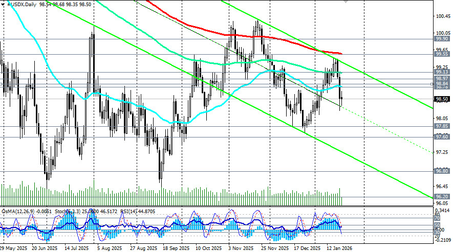 Заявления президента США Дональда Трампа о готовности ввести 10%-ные тарифы на товары из восьми европейских стран с 1 февраля (с потенциальным повышением до 25% в июне) стали шоком для рынков. Эта угроза, связанная с планами США по приобретению Гренландии, спровоцировала волну распродаж активов, связанных с глобальной торговлей, и активизировала торговлю по схеме «Продай Америку».Индекс доллара USDX упал до области 98.00 - 98.20, близко к 3-х недельным минимумам. Доллар потерял привлекательность как валюта-убежище, поскольку именно политика США стала источником риска. Инвесторы бегут в классические защитные активы - золото и гособлигации. Евро выигрывает от этой ситуации относительно, так как воспринимается рынком как альтернатива доллару в условиях давления на трансатлантические отношения. Однако его рост сдерживается рисками для европейской экономики от потенциальных пошлин.