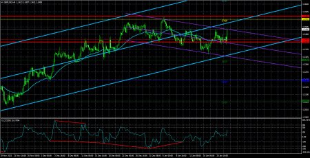 Валютная пара GBP/USD не желает следовать на этой неделе за парой EUR/USD, хоть это и было бы максимально логично. Напомним, что большую часть времени евро и фунт торгуются практически одинаково, а фундаментальный фон на этой неделе на 90% касается доллара США. Таким образом, именно доллар растет или падает, а остальные валюты просто ходят за ним. Но только не фунт и только не на этой неделе. Чем объяснить подобное поведение британского смутьяна? На самом деле, ничем. В очередной раз напоминаем трейдерам, что рынок движется не только на основании фундамента или макроэкономики. Если бы логическая цепочка «новость – движение» работала, то любое движение на рынке можно было бы спрогнозировать с вероятностью 100%. В том то и дело, что на практике все гораздо сложнее. Рынок – это огромное количество участников, далеко не каждый из которых преследует цель получения прибыли на курсовой разнице. Таким образом, британская валюта, возможно, и росла бы, но какой-нибудь крупный игрок начал резко продавать британский фунт и предложение стало выше. Поэтому еще раз напомним – не следует пытаться объяснить абсолютно любое движение на рынке или отсутствие оного. В последние дни и недели фунт стерлингов, во-первых, торгуется в ограниченном диапазоне, во-вторых, постоянно прыгает то вверх, то вниз. То есть рынок нервничает и паникует. С чем связана паника? Да все с тем же, что и раньше. Гренландия, нападки Трампа на ФРС, очередная критика и угрозы в адрес Пауэлла, раздача угроз в адрес стран Латинской Америки, непонятная сделка с Марком Рютте, введение новых тарифов, через четыре дня отмена новых тарифов. А, по сути, пара GBP/USD уже несколько недель подряд стоит на одном месте. Что может ее сдвинуть с этого места? На наш взгляд, это явно не отчет по ВВП США. Еще первые две оценки показали достаточно сильный рост американской экономики в третьем квартале, которому никто на рынках уже просто не верит. Напомним, что структура прошлой оценки показала – ВВП растет на повышении государственных расходов(за что, кстати, Трамп «проехался» по Евросоюзу), а также за счет поступления импортных пошлин(которые никак не может отменить Верховный суд США). На наш взгляд, техника – это единственное, от чего сейчас следует отталкиваться при принятии торговых решений. Техника на дневном ТФ говорит о весьма вероятном возобновлении восходящего тренда, а паузы в движении – это абсолютно нормальное явление. Техника на 4-часовом ТФ говорит о сложной коррекции, после завершения которой опять-таки должен возобновиться тренд. Индикатор CCI уже устал заходить в область перепроданности и рисовать «бычьи» дивергенции. И давайте вспомним, что по евровалюте уже 7 месяцев(!!!) наблюдается тотальный флэт. А фунт стерлингов зависим от евровалюты. Спираль продолжает сжиматься, но когда-нибудь она «выстрелит». Средняя волатильность пары GBP/USD за последние 5 торговых дней составляет 77 пунктов. Для пары фунт/доллар это значение является «средним». В пятницу, 23 января, таким образом, мы ожидаем движения внутри диапазона, ограниченного уровнями 1,3414 и 1,3568. Старший канал линейной регрессии направлен вверх, что указывает на восстановление тренда. Индикатор CCI шесть раз заходил в область перепроданности за последние месяцы и сформировал множество «бычьих» дивергенций, что постоянно предупреждает трейдеров о п