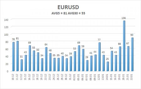 Валютная пара EUR/USD в течение четверга сохранила восходящую тенденцию. И это очень хорошо, что быки не отступили от своих намерений, как только Трамп выдал очередное помилование. На текущий момент официальной, проверенной и подтвержденной информации «кот наплакал». Дональд Трамп в ходе форума в Давосе(куда он, кстати, опоздал, но царю можно) заявил, что он достиг договоренностей по острову Гренландия с генсеком НАТО Марком Рютте. И у нас вновь возникает один вопрос: а с каких пор генсек Рютте распоряжается датскими землями? И здесь возможны несколько возможных вариантов ответа. Марк Рютте мог согласовать с Дональдом Трампом возможное расположение американских военных баз и систем ПВО на острове Гренландия, которые не противоречат стандартам НАТО. Так как Дания является членом НАТО, то такой вариант выглядит вполне логичным и честным. Однако зачем тогда Трамп настаивал на покупке целого острова? Что мешало просто договориться с европейцами о расположении военных баз на нем? Тем более, что Европа и США – союзники по НАТО. Вариант второй. Дональд Трамп договорился о чем угодно с Марком Рютте, только в Копенгагене об этом ничего не знают, а в Брюсселе просто заблокируют сделку. На наш взгляд, Трамп хочет именно заполучить огромный остров для геополитических целей, а также с целью установления контроля над всеми природными ископаемыми, коих в недрах заснеженной территории наверняка находится на сотни миллиардов долларов. Именно поэтому он предлагает по миллиону долларов каждому жителю Гренландии, если на референдуме(а кто позволит проводить этот референдум?) они проголосуют за присоединение к США. Что такое для Америки 75 миллиардов? Именно поэтому Трамп настаивает на покупке острова, а не на передаче его в аренду под различные военные объекты. Для того, чтобы разместить даже 10 военных баз, территория в 2,166 млн квадратных километров явно не нужна. Таким образом, во-первых, никакой официальной информации о договоренностях нет, во-вторых, мы сильно сомневаемся, что вопрос решился так легко и просто. Зато Дональд Трамп отменил свое решение о внедрении дополнительных пошлин для стран ЕС и Великобритании с 1 февраля. По его словам, соглашение по Гренландии достигнуто, поэтому пошлины больше не требуются. Помните? «Trump always chickens out». Конечно, на практике совсем не always, но довольно часто. Трамп четко просчитывает все возможные ходы и последствия любого своего шага. А, может быть, просчитывает даже не он, а целая команда аналитиков, экономистов и политологов. Если «овчинка стоит выделки», тогда Трамп делает шаг вперед. Если потенциально его очередная инициатива может принести гораздо больше убытков, чем дивидендов, Трамп... блефует. Представьте себе простую ситуацию. Трамп угрожает повышением тарифов на 500% для Китая, если тот не откажется от попыток захватить Тайвань. Если Пекин испугается, отлично. Если нет, ну и ладно. Китай не испугается, испугается Евросоюз или другая «рыба» помельче. Средняя волатильность валютной пары EUR/USD за последние 5 торговых дней по состоянию на 23 января составляет 81 пункт и характеризуется, как «средняя». Мы ожидаем движение пары между уровнями 1,1664 и 1,1826 в пятницу. Старший канал линейной регрессии направлен вверх, но по факту все еще продолжается флэт на дневном ТФ. Индикатор CCI зашел в область перепроданности на эт