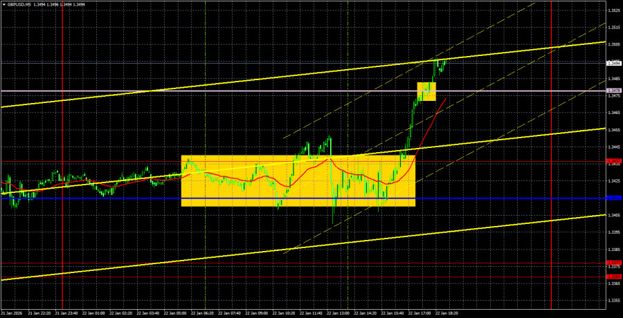 Торговые рекомендации и разбор сделок по GBP/USD на 23 января. Британский фунт вырывается из клетки.