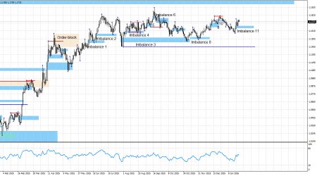 Пара EUR/USD выполнила отбой от зоны «бычьего» имбаланса 9 и возобновила процесс роста, попутно