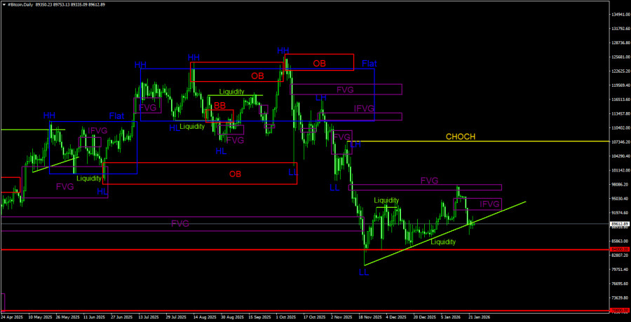 CHOCH – слом трендовой структуры. Liquidity – Ликвидность, Stop Loss трейдеров, которые маркет-мейкеры используют для набора своих позиций. FVG – Область ценовой неэффективности. Цена очень быстро проходит такие области, что указывает на полное отсутствие одной из сторон на рынке. В последствии цена имеет свойство возвращаться и получать реакцию от таких областей. IFVG – Инвертированная область ценовой неэффективности. После возврата к такой области, цена не получает от нее реакцию, а импульсно пробивает, а затем тестирует ее с другой стороны. OB – Ордер-блок. Свеча, на которой маркет-мейкер открывал позицию с целью забора ликвидности для формирования собственной позиции в противоположном направлении.Материал предоставлен компанией InstaForex - www.instaforex.comНовость предоставлена компанией