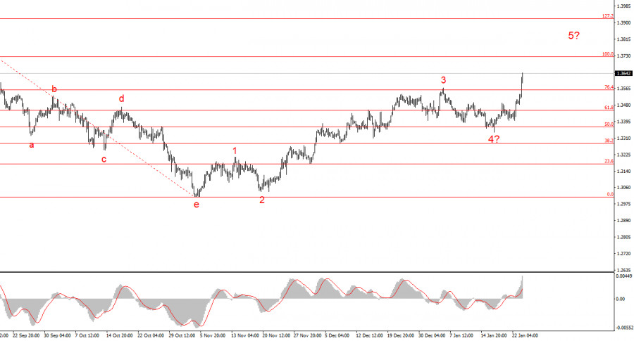 Исходя из проведенного анализа EUR/USD, я делаю вывод, что инструмент продолжает построение повышательного участка тренда. Политика Дональда Трампа и денежно-кредитная политика ФРС остаются весомыми факторами падения американской валюты в долгосрочном плане. Цели текущего участка тренда могут простираться вплоть до 25-й фигуры. На текущий момент я считаю, что коррекционная волна 4 завершила свое построение, поэтому ожидаю дальнейшего повышения котировок с первой целью, находящейся около отметки 1,1918. Волновая картина по GBP/USD:
