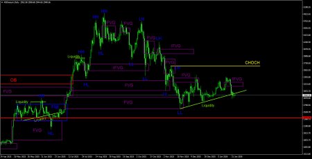 CHOCH – слом трендовой структуры. Liquidity – Ликвидность, Stop Loss трейдеров, которые маркет-мейкеры используют для набора своих позиций. FVG – Область ценовой неэффективности. Цена очень быстро проходит такие области, что указывает на полное отсутствие одной из сторон на рынке. В последствии цена имеет свойство возвращаться и получать реакцию от таких областей. IFVG – Инвертированная область ценовой неэффективности. После возврата к такой области, цена не получает от нее реакцию, а импульсно пробивает, а затем тестирует ее с другой стороны. OB – Ордер-блок. Свеча, на которой маркет-мейкер открывал позицию с целью забора ликвидности для формирования собственной позиции в противоположном направлении.Материал предоставлен компанией InstaForex - www.instaforex.comНовость предоставлена компанией