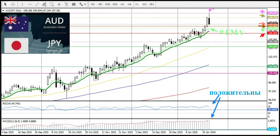 Инвесторы сдержанно восприняли инициативу Такаичи о временном двухлетнем снижении 8% налога на потребление продуктов питания, что спровоцировало распродажу государственных облигаций. Давление на долговой рынок частично нивелирует эффект от более жесткого риторического посыла Банка Японии и ограничивает потенциал дальнейшего укрепления йены, тем самым оказывая скрытую поддержку кроссу AUD/JPY и сужая пространство для его более глубокого снижения.