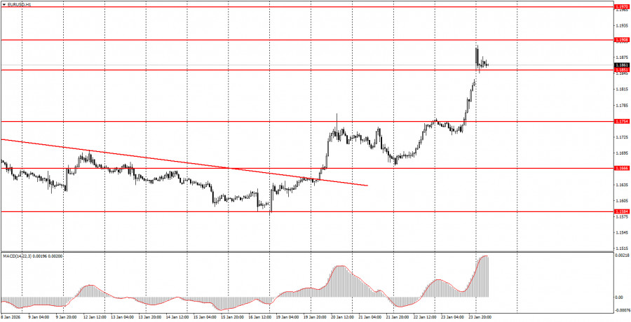 Фундаментальных событий на сегодня не запланировано, а все наиболее важные события уже состоялись на прошлой неделе. Дональд Трамп в присущей для себя манере ввел пошлины и через три дня отменил их, когда противоположная сторона пошла на уступки. Пока неясно, какие это уступки и о чем договорились генсек НАТО Марк Рютте и Дональд Трамп, но пошлины с 1 февраля отменяются. В то же время трейдерам еще предстоит ознакомиться с позицией Евросоюза и Дании по договоренностям, связанным с островом Гренландия. Какова она, пока никто не знает. Учитывая скорость развития событий в 2026 году, мы допускаем, что новая неделя – это повод для Трампа «заварить кашу» еще где-нибудь на планете. Возможно, на этой неделе внимание президента США будет обращено на Иран.Советуем ознакомиться с другими статьями автора: