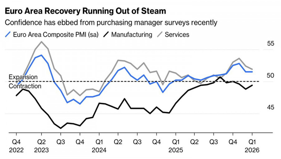 Дональд Трамп считает, что ослабление американского доллара – это здорово. Считают ли так другие страны? Сильно сомневаюсь. Евро протестировал психологически важную отметку $1,2, с которой в прошлом ориентированная на экспорт экономика еврозоны серьезно мучалась. Еще в 2025 вице-президента ЕЦБ Луис де Гиндос заявил, что при EUR/USD на этом уровне ей придется трудно. Сейчас к его мнению присоединяются другие члены Управляющего совета. Глава Банка Австрии Мартин Кохер заявил, что ЕЦБ будет вынужден действовать, если укрепление евро сделает его прогнозы по инфляции невыполнимыми. Его коллега из Франции Франсуа Вилларуа де Гало утверждает, что Европейский центробанк внимательно следит за происходящими на Forex событиями и будет их учитывать при вынесении вердиктов по ставкам. В этом отношении заседание Управляющего совета 5 февраля обещает быть очень интересным. Ни о каких намеках на ужесточение денежно-кредитной политики речи не пойдет. Как бы не вернуться к монетарной экспансии! Динамика европейской деловой активности