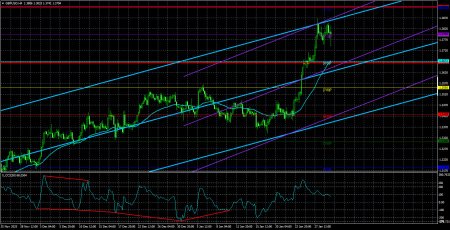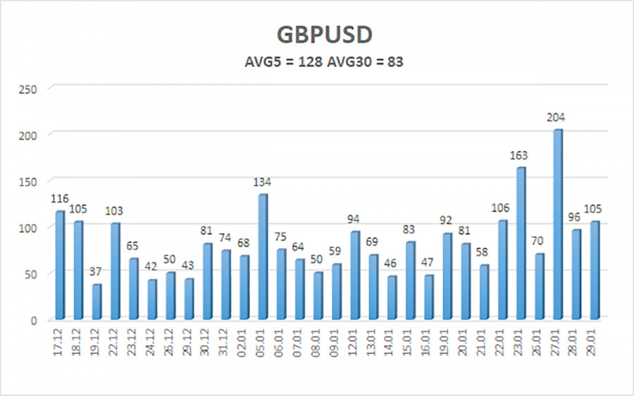 Валютная пара GBP/USD в четверг также не показала абсолютно никакого желания двигаться на Юг. Результаты заседания ФРС в среду вечером могли оказать влияние на движение пары в четверг, но не сделали этого. Таким образом, впервые за долгое время реакция рынка на столь важное событие практически отсутствовала. В четверг никаких важных событий не было ни в Великобритании, ни в США. Дональд Трамп никого не уволил, ни на кого не напал, не проводил новых военных операций, не угрожал ввести новые пошлины или устроить государственный переворот в соседней стране. Поэтому рынку в течение дня практически не на что было реагировать. Однако, кажется, это ненадолго... Уже в это воскресение в Америке может начаться второй «шатдаун» за последние полгода. На этот раз демократы и республиканцы не могут договориться о финансировании Службы иммиграционного и таможенного контроля(ICE), на которую Трампа решил выделить 10 млрд $. Напомним, что только в январе-месяцы федеральные агенты этой службы застрелили двух американцев, что вызвало широкий общественный резонанс. Как следствие, демократы требуют исключить из общего бюджета финансирование ICE, усилить ответственность агентов за совершенные ими нарушения и преступления, усилить контроль над ведомством. Естественно, Трамп выступает против такой инициативы, а по поводу двух убийств мирных граждан уже сообщил, что федеральные агенты применяли меры самообороны. Хотя на многочисленных видео в сети Интернет видно, что это не так. Тем временем, рынки закладывают 77%-ую вероятность нового «шатдауна». Напомним, что осенью прошлого года американская валюта практически никак не отреагировала на приостановку работы правительства из-за политических разногласий, но мы еще тогда говорили, что это полностью алогичная реакция рынка. Другими словами, ко всем проблемам американского доллара теперь добавляется еще и «шатдаун». А вечно рынок так благосклонно, как прошлой осенью, относится к доллару не будет. Дональд Трамп на этой неделе уже открыто заявил, что текущий курс доллара – блестящий, и если он упадет еще ниже, то для экономики США это будет только плюс. Трамп продолжает грезить нивелирование дефицита торгового баланса и вместо того, чтобы развивать промышленность, производство и внутренний спрос, старается палками заманить американские компании обратно в США, под дулом пистолета заставить торговых партнеров инвестировать в экономику США и закупать у нее товары и сырье на сотни миллиардов долларов, а также вводить сумасшедшие пошлины, чтобы понизить уровни импорта. Кстати, дефицит торгового баланса в США действительно уменьшился с -136 млрд $ в прошлом марте до -29 млрд $ в октябре. То есть приблизительно на 107 млрд $. Из них примерно 90 млрд $ - это снижение импорта. То есть торговый баланс растет не потому, что Америка экспортирует больше, а потому что импортирует меньше. Однако рынок «почему-то» не радуется по этому поводу и продолжает всеми силами избавляться от американской валюты. Что опять-таки очень выгодно Трампу. Однако нас интересует в первую очередь доллар, а не экономика США, поэтому мы делаем однозначный вывод – падение американской валюты продолжится. Средняя волатильность пары GBP/USD за последние 5 торговых дней составляет 128 пунктов. Для пары фунт/доллар это значение является «высоким». В пятницу, 30 