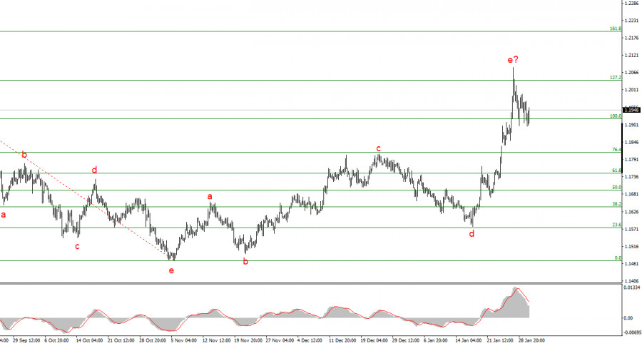 Анализ EUR/USD. 30 января. Европейская экономика не интересна рынку Рынок зря радуется кандидатуре УоршаВолновая картина по EUR/USD: