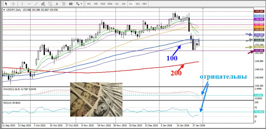Японская иена продолжает падать на фоне снижения ожиданий повышения процентной ставки Банком Японии. Наряду с этим обеспокоенность финансовой устойчивостью страны в условиях рефляционной политики премьер-министра Санаэ Такаичи и политическая неопределённость перед досрочными выборами 8 февраля подтачивают статус йены как актива-убежища. Это вместе с умеренным укреплением доллара США толкает пару USD/JPY к круглому уровню 154,00.