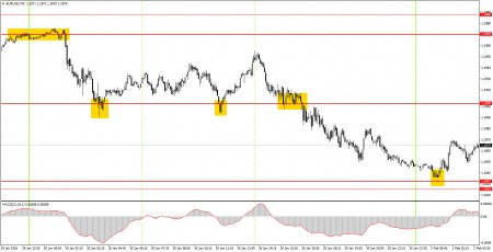 Валютная пара EUR/USD в течение пятницы была настроена на коррекцию практически с самого утра. Несмотря на довольно большое количество макроэкономических публикаций, рынок не принял их во внимание. К примеру, все европейские отчеты(которые показали достаточно неплохие значения) никакой поддержки евровалюте не оказали. Во второй половине дня был опубликован один-единственный индекс цен производителей в США. Этот отчет действительно значительно превысил прогнозы экспертов и теоретически мог спровоцировать укрепление доллара. Однако мы так не считаем. Индекс цен производителей не является важным показателем, а рынок делает вывод об инфляции на основании отчетов по инфляции. С нашей точки зрения, пара продолжила корректироваться на технических основаниях. Последний виток роста был сильным и стремительным, поэтому коррекция была необходима. В данное время цена пробила линию тренда, но на наш взгляд доллар в любой момент может возобновить падение. Просто посмотрите по новостям, что происходит сейчас в Америке...5M график пары EUR/USD.