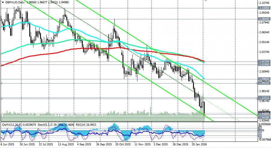 Текущая динамика пары GBP/AUD отражает структурное преимущество австралийского доллара, обусловленное жёсткой монетарной политикой РБА и устойчивыми инфляционными факторами. Фунт стерлингов, несмотря на отдельные позитивные макроданные, остаётся под давлением из-за более мягкого подхода Банка Англии и сохраняющейся внутренней неопределённости. В среднесрочной перспективе преобладают риски продолжения нисходящего тренда GBP/AUD, при этом любые коррекционные отскоки, вероятно, будут носить ограниченный характер до появления сигналов о сближении монетарных курсов Великобритании и Австралии, отметили мы в нашем сегодняшнем фундаментальном анализе и обзоре «GBP/AUD: заседания РБА и Банка Англии, итоги и ожидания». Технические индикаторы (в нашем случае это – RSI, OsMA, Стохастик) на дневном, недельном, месячном графиках цены находятся на стороне продавцов, также сигнализируя о сильном медвежьем импульсе. Пробой уровней поддержки 1.9480 (ЕМА200 на недельном графике), 1.9430 (ЕМА50 на месячном графике) может спровоцировать дальнейшее снижение в сторону стратегических уровней поддержки 1.9245 (ЕМА144 на месячном графике), 1.9010 (ЕМА200 на месячном графике), пробой которых, в свою очередь, окончательно сломает бычий тренд пары, берущий начало в июне 2023 года с пробоя отметки 1.9040, через которую на тот момент проходил стратегический уровень сопротивления - ЕМА200 на месячном графике. Коррекционный сценарий возможен, если пара сумеет удержаться выше 1.9480 и отыграть часть падения. Ближайшее сопротивление будет находиться в зоне 1.9600–1.9650. Альтернативный сценарий В случае резкого замедления инфляции в Австралии или ухудшения данных по рынку труда РБА может занять более нейтральную позицию, что ослабит австралийский доллар. Одновременно более «ястребиная» риторика Банка Англии способна временно стабилизировать GBP/AUD. В этом случае GBP/AUD имеет шанс более сильнее отыграть часть сданных позиций. В случае пробоя ближайшей зоны сопротивления 1.9600 – 1.9650 коррекция может продолжиться в сторону следующей зоны сопротивления 1.9700 (ЕМА200 на 1-часовом графике и «круглая» отметка) – 1.9720 (ЕМА144 на недельном графике). Ее пробой может усилить позитивную динамику, вернув цену в долгосрочный бычий тренд. Однако для разворота и среднесрочного тренда потребуется кардинальное изменение монетарных ожиданий относительно РБА и Банка Англии. С технической точки зрения, это будет выглядеть пробоем сопротивления на уровнях 1.9985 (ЕМА50 на дневном графике), 1.2000, ростом в сторону ключевых сопротивлений 2.0190 (ЕМА50 на недельном графике), 2.0235 (ЕМА200 на дневном графике) и их дальнейшим пробоем. Пока же преобладает негативная динамика. Пробой ключевой поддержки в зоне 1.9480–1.9430 откроет путь к значительному дальнейшему снижению. Уровни поддержки: [b]открыть торговый счет + зарегистрироваться в системе копирования сигналов + инвестировать в ПАММ-системеМатериал предоставлен компанией InstaForex - www.instaforex.com