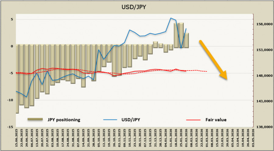 В январе общая деловая активность в Японии выросла самыми быстрыми темпами с мая 2023 года. Композитный индекс S&P Global Japan, составивший 53,1 в начале года, вырос с 51,1 в декабре и свидетельствует о значительном и ускоренном росте общего объема производства частного сектора. Более того, темпы роста были лучшими за последние 32 месяца. Улучшение было обусловлено не только более сильным ростом активности в сфере услуг, но и новым увеличением объемов промышленного производства. На уровне сводного индекса новые заказы выросли самыми быстрыми темпами с мая 2024 года, что было поддержано повсеместным ростом спроса как на товары, так и на услуги.Экспорт в целом расширился впервые с марта прошлого года и в наибольшей степени за более чем четыре года, рост экспорта снимает последние опасения относительно того, насколько негативно подействуют на экономику Японии тарифы Трампа. Компании также активно увеличивали штат сотрудников, поскольку портфель заказов продолжал расти. Наблюдалось снижение ценового давления, но темпы инфляции отпускных цен ускорились до самых высоких показателей за более чем полтора года. Последний показатель – самый важный с точки зрения воздействия на курс иены, поскольку он показывает, что инфляционное давление растет на фоне роста экономики, это явный сигнал к тому, что повышение ставки Банка Японии не скажется негативно. В целом отчет в пользу более сильной иены. Из США поступили неожиданные новости. После того как оба отчета ISM вышли сильнее прогнозов, доллар не мог не отреагировать попыткой роста, что и произошло. Динамика была ограниченной, поскольку главное события недели все же отчет по занятости, и игроки ждали пятницы. Ждали до тех пор, пока Бюро статистики труда США не объявило о переносе публикаций данных в связи с очередной приостановкой работы правительства. Отчет о вакансиях за декабрь будет опубликован сегодня, отчет по индексу потребительских цен США за январь — 13 февраля, отчет о занятости за январь — 11 февраля. Для иены главными становятся внутриполитические события. Премьер-министр Японии Санаэ Такаичи, похоже, одержит крупную победу на предстоящих выборах 8 февраля. Победа позволит Такаичи продвигать экономические преобразования, которые, по задумке, позволят вернуться к «нормальному состоянию» после десятилетий дефляции. То есть достижению устойчивого роста инфляции на уровне около 2%. Положительный результат выборов для ЛДП, который подстегнет «торговлю Такаичи», может поднять курс иены вновь к 160/162, поскольку Такаичи в своей экономической программе близка к идеям Абэномики, и слабая иена здесь скорее в плюс, чем в минус. Чистая короткая позиция по иене сократилась за отчетную неделю на 0.8 млрд, до -2.8 млрд, расчетная цена продолжает держаться вблизи долгосрочной средней.Иена по-прежнему в тумане. Если Такаичи получит в воскресенье контроль над парламентом, курс иены может подпрыгнуть выше, что автоматически увеличивает шансы на интервенцию и откат к 150. Предполагаем, что может сработать следующий сценарий – покупка на текущих с целью войти в диапазон 160/162, где длинная позиция должна быть закрыта в ожидании реакции Банка Японии. В долгосрочной перспективе снижение USD/JPY, поскольку ФРС и Банк Японии продолжат реализацию встречных курсов, сужающих спред доходности.Материал предоставлен комп