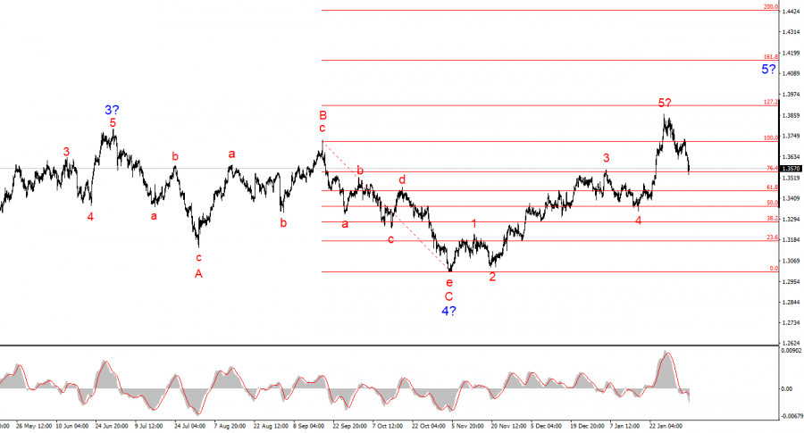 Сегодня состоялось заседание не только ЕЦБ, но и Банка Англии. В отличие от европейской валюты, британский фунт оказался под давлением рынка после того, как узнал о подробностях заседания и голосования комитета MPC по ставке. Сразу хочу сказать, что, на мой взгляд, особой разницы нет в том, с каким перевесом голосов было принято решение о ставке. Рынок ожидал, что решение будет более единогласным, но просчитался. Тем не менее, решение регулятор принял именно то, которого ждали все участники рынка. Что касается будущих решений британского центрального банка, то они полностью будут зависеть от экономической статистики. Тот факт, что сегодня за снижение ставки проголосовало четверо управляющих, а не двое(как ожидал рынок), не гарантирует четыре «голубиных» голоса или больше на следующем заседании. Поэтому я считаю, что рынок отреагировал слишком экспрессивно, понижая спрос на британский фунт. Однако стоит также напомнить, что падение фунта – это сейчас наиболее логичный сценарий. В своих обзорах я регулярно призываю моих читателей не привязываться к глобальной волновой разметке. Волновая разметка имеет свойство меняться. Она служит больше для того, чтобы участники рынка понимали, какой сейчас тренд и чего ожидать далее. В торговле лучше всего ориентироваться на стандартные пятиволновые и трехволновые структуры. Например, мы увидели построение четкой и убедительной импульсной пятиволновой структуры. Чего ожидать дальше с высокой долей вероятности? Построения трех коррекционных волн, что мы и наблюдаем уже две недели. Вполне возможно, что если бы волновая разметка указывала на повышение инструмента, то сегодня мы бы не увидели снижения британского фунта. Но коррекционный участок тренда тянет фунт вниз, особенно если новостной фон формально поддерживает такой сценарий. Вернемся к заседанию BoE. Как я уже сказал, решение о сохранении процентной ставки было принято соотношением голосов 5 к 4. Решающий голос отдал Эндрю Бейли. Губернатор Банка Англии сообщил, что в будущем он ожидает снижения стоимости заимствований, если прогнозируемое снижение инфляции в ближайшие месяцы будет устойчивым и однозначным. «Нам нужно убедиться в том, что инфляция не продолжит расти, как это было по итогам декабря», – сообщил г-н Бейли. «Поэтому мы сегодня приняли решение сохранить ставку без изменений». Обратите внимание на другие мои статьи: Анализ EUR/USD. 5 февраля. ЕЦБ принял предсказуемое решение