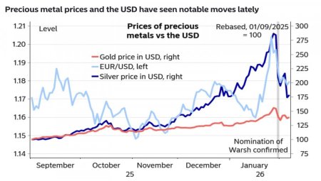 Основной причиной бегства инвесторов от гринбэка являются страхи из-за политики Дональда Трампа. Считается, что его тарифы будут тормозить экономику США. Что смена состава FOMC направлена на снижение ставок и подрывает независимость ФРС. Что намерение бить своих, чтобы чужие боялись, снижает авторитет доллара как основной резервной валюты. Как только Дональд Трамп успокаивается, EUR/USD падает. Причем последний январский взлет пары был спровоцирован одобрительными комментариями президента относительно ослабления гринбэка, а также слухами о скоординированной валютной интервенции США и Японии. В такой обстановке подросли и драгоценные металлы, однако когда она изменилась, золото и серебро дружно рухнули с вершины. По их стопам пошла и EUR/USD. Это в очередной раз доказывает, что причины изменений котировок основной валютной пары нужно искать не во Франкфурте, а в Вашингтоне. Динамика EUR/USD, золота и серебра