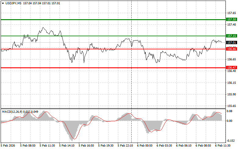 Разбор сделок и советы по торговле японской иенойТест цены 157.02 пришелся на момент, когда индикатор MACD много прошел вверх от нулевой отметки, что на мой взгляд ограничивало восходящий потенциал доллара. По этой причине я не покупал доллар.Во второй половине дня внимание участников торгов будет приковано к публикации ряда значимых макроэкономических показателей. Особое значение придается индексу потребительского доверия от Мичиганского университета. Высокие показатели этого индекса могут свидетельствовать о благоприятных ожиданиях домохозяйств касательно будущего, что, в свою очередь, способно оказать поддержку доллару. Помимо индекса настроения, трейдеры будут пристально следить за данными по инфляционным ожиданиям. Если они превысят прогнозы, это также спровоцирует покупки доллара против японской иены. Кроме этого, сегодня запланировано выступление члена FOMC Филипа Н. Джефферсона. Его высказывания о текущем состоянии экономики и будущих направлениях денежно-кредитной политики будут тщательно анализироваться участниками рынка. Любые намеки на возможное изменение позиции ФРС относительно процентных ставок или других аспектов монетарной политики могут вызвать заметную волатильность на финансовых рынках.Что касается внутридневной стратегии, то больше буду опираться на реализацию сценариев №1 и №2.Сигнал на покупкуСценарий №1: покупать USD/JPY сегодня планирую при достижении точки входа в районе 157.15 (зеленая линия на графике) с целью роста к уровню 157.50 (более толстая зеленая линия на графике). В районе 157.50 буду выходить из покупок и открывать продажи в обратную сторону (расчет на движение в 30-35 пунктов в обратную сторону от уровня). Рассчитывать на рост пары сегодня можно после сильных данных по США. Важно! Перед покупкой, убедитесь в том, что индикатор MACD находится выше нулевой отметки и только начинает свой рост от нее.Сценарий №2: покупать USD/JPY сегодня также планирую в случае двух подряд тестов цены 156.86 в момент, когда индикатор MACD будет находиться в области перепроданности. Это ограничит нисходящий потенциал пары и приведет к обратному развороту рынка вверх. Можно ожидать рост к противоположным уровням 157.15 и 157.50.Сигнал на продажу Сценарий №1: продавать USD/JPY сегодня планирую после обновления уровня 156.86 (красная линия на графике), что приведет к быстрому снижению пары. Ключевой целью продавцов будет уровень 156.47, где буду выходить из продаж, а также открывать сразу покупки в обратную сторону (расчет на движение в 20-25 пунктов в обратную сторону от уровня). Давление на пару вернется в случае слабой статистики. Важно! Перед продажей, убедитесь в том, что индикатор MACD находится ниже нулевой отметки и только начинает свое снижение от нее. Сценарий №2: продавать USD/JPY сегодня также планирую в случае двух подряд тестов цены 157.15 в момент, когда индикатор MACD будет находиться в области перекупленности. Это ограничит восходящий потенциал пары и приведет к обратному развороту рынка вниз. Можно ожидать снижения к противоположному уровню 156.86 и 156.47.Что на графике:Тонкая зеленая линия – цена входа, по которой можно покупать торговый инструмент;Толстая зеленая линия – предположительная цена, где можно расставлять Take Profit или самостоятельно фиксировать прибыль, так как выше этого уровня дальнейший рост маловероятен;Тонкая красная л