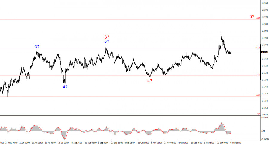Курс инструмента EUR/USD в течение пятницу восстановился приблизительно на 30 базовых пунктов, но амплитуда движений инструмента уже несколько дней подряд чрезвычайно слабая. По большому счету, движения по евровалюте мы увидели только в понедельник. Далее, ни отчет по инфляции в ЕС, ни заседание ЕЦБ, ни отчеты JOLTS, ADP и ISM в США не смогли сдвинуть инструмент с мертвой точки. Поэтому текущая неделя не внесла никакой ясности. Согласно волновому анализу, картина по-прежнему не самая однозначная из-за коррекционного статуса текущего снижения. Напомню, что оно может быть трехволновым(по классике), а может и оказаться одной волной в составе сложной глобальной волны 5. Поэтому я говорю в своих обзорах, что в ближайшее время трейдерам стоит присматриваться к новым покупкам. Тем более, что текущая неделя показала нам: вероятность увидеть несколько раундов смягчения денежно-кредитной политики ФРС в 2026 году гораздо выше, чем увидеть хотя бы одно снижение ставок ЕЦБ. На этой неделе в США вышло только два отчета по рынку труда из запланированных четырех. Спасибо «шатдауну». Публикация Nonfarm Payrolls и безработицы перенесена на следующую неделю. Однако отчеты JOLTS и ADP уже сейчас позволяют предположить, что ничего хорошего от еще неопубликованных отчетов ждать не стоит. Безусловно, оба могут показать более высокие значения, нежели ожидания рынка, и вызвать новое укрепление американского доллара. Однако само состояние рынка труда США от этого не изменится с плохого на хорошее. Если это предположение верно, то ФРС придется возобновить цикл смягчения политики. А что будет после мая, даже предположить сейчас тяжело.Общие выводы.