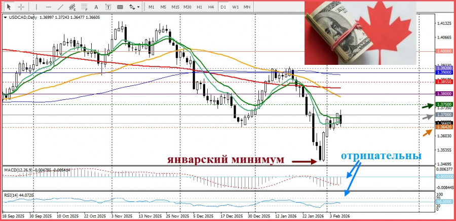 Тем временем доллар США теряет темпы недавнего восстановления после четырехлетнего дна в условиях все большего осознания рынком того, что Федеральная резервная система продолжит снижать ставки еще дважды в 2026 году. Эти ожидания подкреплены свежими данными из США, сигнализирующими о признаках охлаждения на рынке труда. В частности, Институт Automatic Data Processing (ADP) в среду зафиксировал создание всего 22 000 рабочих мест в частном секторе января против 37 000 ранее. Кроме того, отчет Job Openings and Labor Turnover Survey (JOLTS) за четверг показал 6,542 миллиона вакансий на конец декабря - ниже предыдущих 6,928 миллиона. Министерство труда США также отметило рост первичных заявок на пособие по безработице до 231 000 за неделю на 31 января с 209 000 неделей ранее.В четверг Трамп заявил, что не стал бы поддерживать кандидатуру Кевина Уорша на пост главы ФРС, если бы тот выступил за повышение ставок. Это ограничивает энтузиазм быков по доллару и способствует формированию благоприятного фона для пары канадского доллара. Участники рынка теперь нужно обратить внимание на публикацию канадских данных о занятости, а также предварительного индекса потребительских настроений Мичигана с инфляционными ожиданиями, которые зададут тон движению пары сегодня.
