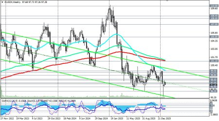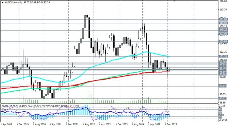 Техническая картинаТехнические индикаторы (в нашем случае это – OsMA, RSI, Стохастик) на краткосрочных тайм-фреймах перешли на сторону продавцов, не выходя из нее на недельном тайм-фрейме.Ключевые уровниСопротивление: 97.50 (бывшая поддержка, теперь сопротивление), 97.55 (ЕМА144 на месячном графике), 99.25 (EMA200 на дневном графике).Поддержка: 96.90 (EMA200 на месячном графике) — стратегический уровень, далее зона 96.20 — 96.00.Возможные сценарииБазовый (медвежий). При подтверждении слабых данных по занятости и инфляции, а также сохранении агрессивной риторики администрации Белого дома в отношении ФРС, USDX с высокой вероятностью протестирует и пробьет уровень 96.90. Это откроет путь к движению в зону 96.20 - 96.00 и окончательно переведет индекс в фазу глобального медвежьего тренда.Коррекционный (боковик/отскок). В случае выхода сильных данных (особенно по инфляции) и успокаивающих комментариев от членов ФРС (Уоллер, Бостик), возможен технический отскок к 97.55 - 98.00. Однако для разворота тренда потребуется прорыв выше 99.25, что в текущих условиях выглядит маловероятным.Эскалационный (усиление падения). Эскалация политического давления на ФРС или резкое ускорение процессов дедолларизации могут спровоцировать ускоренное падение ниже 96.00. *) подробнее