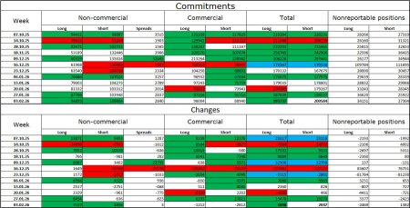 На 4-часовом графике пара выполнила отбой от уровня Фибо 127,2% – 1,3795. Таким образом, последовал разворот в пользу американца и начался процесс падения в направлении зоны поддержки 1,3369–1,3435. «Медвежий» тренд на часовом графике пока не завершен. Закрепление курса пары над уровнем 1,3795 позволит рассчитывать на продолжение «бычьего» тренда в направлении уровня 1,4020. Назревающих дивергенций сегодня не наблюдается. Отчет Commitments of Traders (COT):