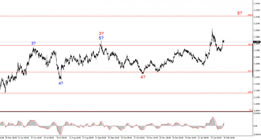 Анализ EUR/USD. 10 февраля. Голубиные ожидания к ФРС растут Трамп расставил точки над «i» с будущим ФРСВолновая картина по EUR/USD: