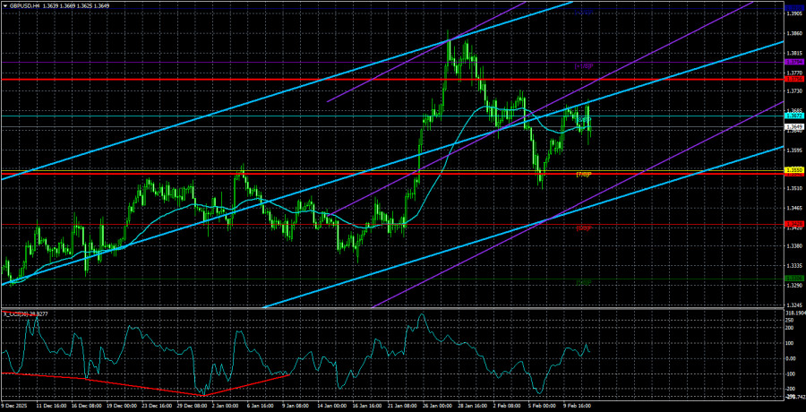 Валютная пара GBP/USD в первой половине среды торговалась достаточно спокойно, а во второй – наоборот. Об отчетах по безработице и Нонфармам мы еще поговорим подробно в наших статьях «Торговые рекомендации», поэтому не будет на них останавливаться. Как мы уже говорили ранее, отдельные отчеты могут даже оказывать поддержку американской валюте. Но это не означает, что ситуация начала налаживаться. Инвесторы бегут от доллара в более безопасные валюты и активы. Инвесторы опасаются, что ФРС придется вновь запускать печатный станок. Инвесторы опасаются, что с приходом Кевина Уорша ключевая ставка ФРС полетит вниз со скоростью света. Инвесторы опасаются геополитических амбиций Трампа и полной неопределенности будущего американской экономики. Инвесторы опасаются растущего на глазах государственного долга США. На днях правительство Китая просто взяло и запретило китайским банкам вкладываться в американские трежерис. Что это, если не продолжение войны между Китаем и США? Вашингтон бьет по сектору торговли, так как имеет возможность это делать, благодаря богатому рынку потребителей. Пекин отвечает в других областях, например, редкоземельных металлов или же инвестиций. Таким образом, основное, что следует помнить трейдерам в ближайшие годы, это: 1)Трампу выгоден дешевый доллар, поэтому никто валюту США не будет спасать от падения; 2)Трамп настраивает против США половину стран мира, поэтому при удобной возможности государства будут отвечать Трампу той же монетой; 3)Трампу не важен фактор инфляции. Он с удовольствием согласится на 10%-ый рост экономики при 10%-ой инфляции; 4)Государственный долг при Трампе будет расти. ФРС – это отдельная тема для разговора в разрезе целей Дональда Трампа. Если кто-нибудь считает, что Хозяин Белого дома и Царь всего мира отрекся от своих задумок установить контроль над центральным банком, то очень сильно ошибается. Уже с мая-месяца давление на чиновников ФРС усилится, так как в этом и заключается миссия Кевина Уорша. Вряд ли Дональд Трамп назначил Уорша на должность председателя, чтобы внутри ФРС ничего не поменялось. А голосов для снижения ключевой ставки по-прежнему не хватает. Большая часть Монетарного комитета полностью поддерживает Джерома Пауэлла и его позицию. Она заключается в том, чтобы подождать некоторое время, чтобы эффект от снижения ключевой ставки в 2025 году проявился полностью в американской экономике. Таким образом, внеплановое смягчение станет возможно только в том случае, если рынок труда продолжит замедляться. Или в случае замедления инфляции до значений, которые не будут требовать сохранения «ограничительной» монетарной политики. Следующий отчет по инфляции выйдет в пятницу, и он может возвестить рынок о замедлении до 2,5%. Вряд ли этого достаточно для нового снижения ключевой ставки, но Пауэлл много раз предупреждал: никакого плана действий по ставке не существует; решения принимаются от заседания к заседанию на основании макроэкономической статистики. Средняя волатильность пары GBP/USD за последние 5 торговых дней составляет 107 пунктов. Для пары фунт/доллар это значение является «средним». В четверг, 12 февраля, таким образом, мы ожидаем движения внутри диапазона, ограниченного уровнями 1,3542 и 1,3756. Старший канал линейной регрессии направлен вверх, что указывает на восстановление тр