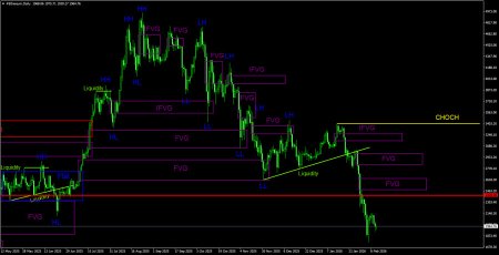 CHOCH – слом трендовой структуры. Liquidity – Ликвидность, Stop Loss трейдеров, которые маркет-мейкеры используют для набора своих позиций. FVG – Область ценовой неэффективности. Цена очень быстро проходит такие области, что указывает на полное отсутствие одной из сторон на рынке. В последствии цена имеет свойство возвращаться и получать реакцию от таких областей. IFVG – Инвертированная область ценовой неэффективности. После возврата к такой области, цена не получает от нее реакцию, а импульсно пробивает, а затем тестирует ее с другой стороны. OB – Ордер-блок. Свеча, на которой маркет-мейкер открывал позицию с целью забора ликвидности для формирования собственной позиции в противоположном направлении.Материал предоставлен компанией InstaForex - www.instaforex.comНовость предоставлена компанией