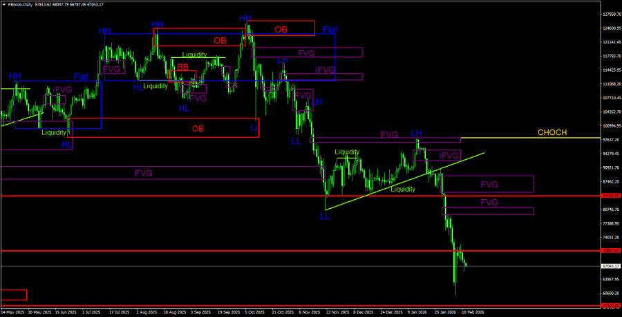 Торговые рекомендации по Биткоину(Bitcoin) на 11 февраля по системе ICT.