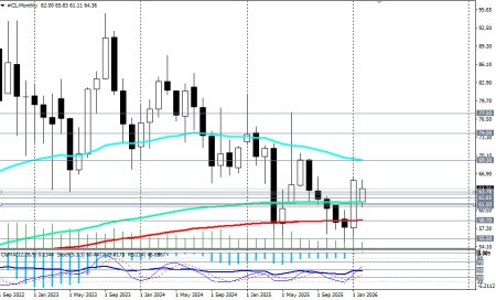 58.70 (ЕМА200 на месячном графике) – отделяет глобальный бычий рынок цены WTI от медвежьего