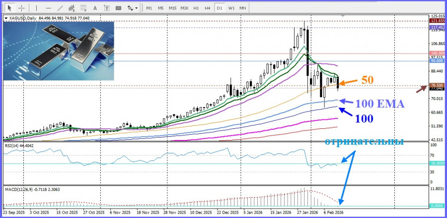 Сегодня в четверг серебро демонстрирует снижение, продолжая опускаться ниже 50-дневной SMA, теряя бычью конфигурацию.