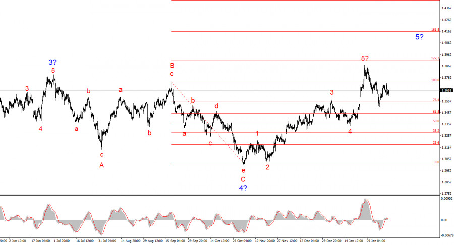 Волновая картина инструмента GBP/USD имеет вполне понятный вид. Пятиволновая повышательная структура завершила свое построение, но глобальная волна 5 может принять гораздо более протяженный вид. Я считаю, что в ближайшее время может наблюдаться построение коррекционного набора волн, после чего возобновиться построение восходящего тренда. Следовательно, в ближайшие недели я могу посоветовать искать возможности для новых покупок. На мой взгляд, при Дональде Трампе фунт стерлингов имеет все шансы стоить 1,45-1,50$. Сам Трамп приветствует снижение курса доллара. Все его действия имеют двойной эффект: снижение доллара и решение внутренних, внешних, торговых и геополитических вопросов.Основные принципы моего анализа: