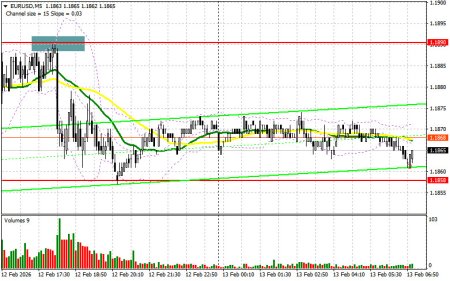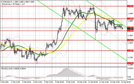Вчера было образовано несколько точек входа в рынок. Давайте посмотрим на 5-минутный график и разберемся с тем, что там произошло. В своем утреннем прогнозе я обращал внимание на уровень 1.1858 и планировал от него принимать решения по входу в рынок. Снижение и формирование ложного пробоя в районе 1.1858 привели к точке входа на покупку евро, что вылилось в рост пары на 30 пунктов. Во второй половине дня проявили себя уже продавцы: активные действия в области 1.1890 привели к точке входа на продажу евро со снижением в район 1.1858.Для открытия длинных позиций по EURUSD требуется:Данные по первичным обращениям за пособием по безработице в США не сильно разочаровали, что привело к небольшому укреплению доллара во второй половине дня. Однако торговля сохранилась в рамках бокового канала. Сегодня в ходе европейских торгов ожидаются цифры по изменению объема ВВП еврозоны за четвертый квартал 2025 года, изменению уровня занятости и сальдо баланса внешней торговли. Вряд ли эти показатели как-то серьезно повлияют на расстановку сил в рынке, так как все будут ждать американскую инфляцию, выходов которой запланирован на вторую половину дня. В случае сохранения торговли в рамках канала, первого проявления быков ожидаю увидеть в районе 1.1858. Формирование там ложного пробоя по аналогии с тем, что я разбирал выше, даст точку входа в длинные позиции с целью восстановления пары к уровню 1.1890, выбраться выше которого вчера так и не удалось. Прорыв и обратный тест этого диапазона станут подтверждением правильных действий на покупку евро уже в расчете на более сильный рывок к сопротивлению 1.1925, где ожидаю активного проявления продавцов. Самой дальней целью выступит максимум 1.1957, где буду фиксировать прибыль. При варианте снижения EUR/USD, и отсутствия активности в районе 1.1858, евро может просесть более сильно. В таком случае продавцы попытаются дотянуться до следующего интересного уровня 1.1832. Лишь формирование там ложного пробоя будет подходящим условием на покупку евро. Открывать длинные позиции сразу на отскок будут от 1.1804 с целью восходящей коррекции в 30-35 пунктов внутри дня.Для открытия коротких позиций по EURUSD требуется: Продавцы вчера себя проявили довольно активно, но пока забрать рынок под свой контроль не удалось. В случае роста пары после данных медведям вновь придется защищать ближайшее сопротивление 1.1890. Упустив его, развитие бычьего рынка продолжится. Только формирование ложного пробоя в районе 1.1890 даст точку входа в короткие позиции с целью движения к поддержке 1.1858. А вот прорыв и закрепление ниже 1.1858, а также обратный тест снизу вверх, позволят добиться более крупной распродажи евро. Это станет дополнительным вариантом на открытие коротких позиций с движением в район 1.1832. Самой дальней целью выступит область 1.1804, где буду фиксировать прибыль. В случае движения вверх EUR/USD, а также отсутствия активных действий медведей в районе 1.1890, где проходят средние скользящие, играющие на стороне медведей, евро получит шанс на дальнейшее восстановление. В таком случае короткие позиции лучше всего отложить до более крупного уровня 1.1925. Продавать там будут только после неудачного закрепления. Открывать короткие позиции сразу на отскок я планирую от 1.1957 с целью нисходящей коррекции в 30-35 пунктов.Рекомендую для ознакомления:В COT-отчете (Commitment of Traders) за 3 февраля на