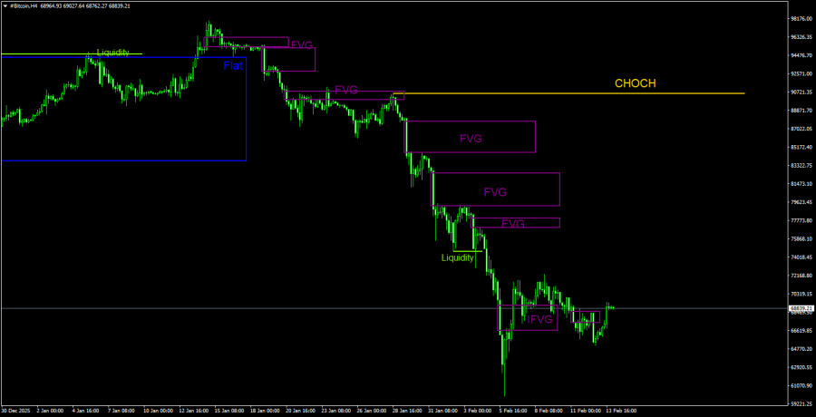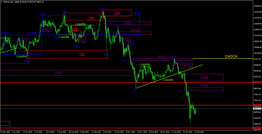 Торговые рекомендации по Биткоину(Bitcoin) на 14 февраля по системе ICT.