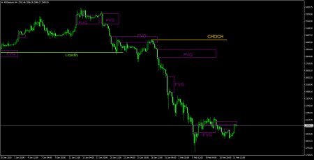 CHOCH – слом трендовой структуры. Liquidity – Ликвидность, Stop Loss трейдеров, которые маркет-мейкеры используют для набора своих позиций. FVG – Область ценовой неэффективности. Цена очень быстро проходит такие области, что указывает на полное отсутствие одной из сторон на рынке. В последствии цена имеет свойство возвращаться и получать реакцию от таких областей. IFVG – Инвертированная область ценовой неэффективности. После возврата к такой области, цена не получает от нее реакцию, а импульсно пробивает, а затем тестирует ее с другой стороны. OB – Ордер-блок. Свеча, на которой маркет-мейкер открывал позицию с целью забора ликвидности для формирования собственной позиции в противоположном направлении. Материал предоставлен компанией InstaForex - www.instaforex.comНовость предоставлена компанией