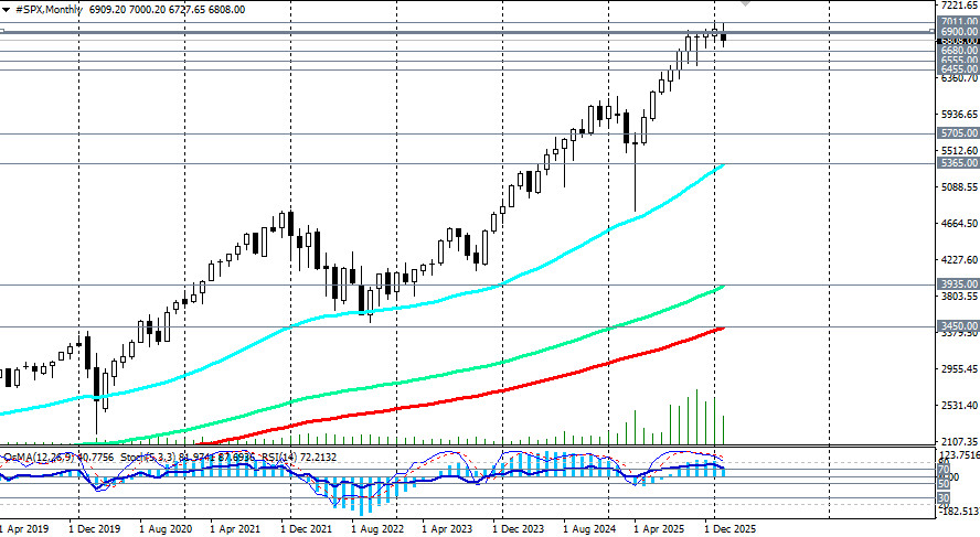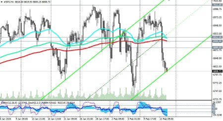 S&P500 вступает в фазу повышенной волатильности, где каждый макроэкономический отчет становится триггером для резких движений. Инвесторы оказались заложниками противоречивых сигналов: сильная экономика означает «ястребиную» ФРС, а слабые корпоративные прогнозы в технологическом секторе — начало долгожданной коррекции, отметили мы в нашем сегодняшнем обзоре «S&P500: испытание волатильностью в ожидании данных по инфляции». А пока что рынки замерли в ожидании публикации (в 13:30 GMT) январского индекса потребительских цен (CPI). Ожидается замедление инфляции с 2,7% до 2,5% в годовом выражении. Если данные совпадут с прогнозом или окажутся ниже, это может придать индексу бычий импульс. Напротив, цифра выше 2,7% усилит опасения по поводу ставок и спровоцирует новую волну распродаж. В этом случае пробой «круглого» уровня и сегодняшнего минимума 6800.00, став самым ранним сигналом для новых коротких позиций, может ускорить падение в сторону нижней границы нисходящего канала на дневном графике, проходящем через отметку 6700.00, и важного среднесрочного уровня поддержки 6680.00 (ЕМА144 на дневном графике). В этой зоне, учитывая глобальный бычий тренд S&P500, можно расположить отложенные ордера на покупку, рассчитывая на отбой и возобновление роста, со стопами ниже 6670.00. Однако пробой 6680.00 может спровоцировать более глубокую коррекцию к зоне ключевых среднесрочных уровней поддержки 6555.00 (ЕМА200 на дневном графике) – 6500.00. В более негативном для фьючерсов S&P500 сценарии дальнейшее снижение и пробой уровня поддержки 6455.00 (ЕМА50 на недельном графике) будет говорить о вероятности слома среднесрочного бычьего тренда с вероятностью более глубокой коррекции внутрь восходящего канала на недельном графике, нижняя граница которого проходит в зоне ключевых долгосрочных уровней поддержки 5705.00 (ЕМА144 на недельном графике), 5365.00 (ЕМА200 на недельном графике), ограничивающих долгосрочный бычий рынок индекса от медвежьего. Отметим, что технические индикаторы (в нашем случае это – RSI, OsMA, Стохастик) на тайм-фреймах с 1-часового по недельный находятся на стороне продавцов. В основном же сценарии рассчитываем все же на возобновление роста цены либо уже сегодня (в случае слабых показателей CPI), либо в отсроченном временном интервале. Самым ранним сигналом в этом случае станет пробой сегодняшнего «хая» 6848.00. Рост же в зону выше важных уровней сопротивления 6880.00 (ЕМА50 на дневном графике) – 6912.00 (ЕМА200 на 1-часовом графике) станет подтверждающим сигналом о возобновлении бычьего тренда и об окончании коррекции. Несмотря на текущую коррекцию, сохраняется глобальный восходящий тренд, а предпочтительными (в долгосрочном периоде) по-прежнему остаются длинные позиции. открыть торговый счет + зарегистрироваться в системе копирования сигналов + инвестировать в ПАММ-системеМатериал предоставлен компанией InstaForex - www.instaforex.com