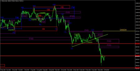 Торговые рекомендации по Биткоину(Bitcoin) на 8 февраля по системе ICT.