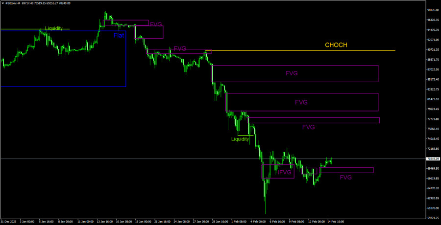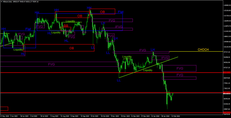 Торговые рекомендации по Биткоину(Bitcoin) на 14 февраля по системе ICT.
