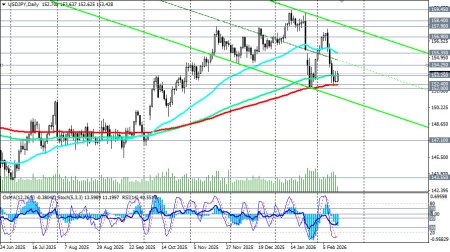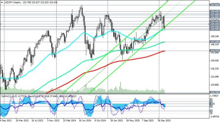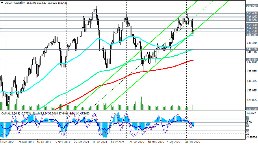 Пара USD/JPY находится в точке пересечения двух противоположных тенденций: ослабления иены из-за разочаровывающих темпов экономического роста Японии и ограниченного потенциала доллара на фоне ожиданий смягчения политики ФРС. Ключевыми событиями недели станут выступления представителей ФРС, включая вице-председателя Мишель Боуман, а также публикация протокола заседания FOMC (в среду) и данных по инфляции PCE (в пятницу) – предпочтительному индикатору ФРС, предположили мы в нашем фундаментальном анализе и обзоре «USD/JPY: иена ослабевает на фоне ВВП». С технической точки зрения, пара USD/JPY удерживается выше растущей ЕМА200 на дневном графике, проходящей через отметку 152.40, что поддерживает более широкий бычий настрой. Выше ключевой 200-периодной скользящей средней на недельном графике и уровня поддержки 143.55 USD/JPY остается также и в зоне долгосрочного бычьего рынка, что сохраняет преимущество длинных позиций в долгосрочном периоде. В то же время, индикаторы (в нашем случае это RSI, OsMA, Стохастик) указывают на сохранение осторожности, оставаясь также на стороне продавцов на дневном и недельном графиках: индекс относительной силы (RSI) находится на уровне 38, оставаясь ниже средней линии (50), а OsMA демонстрирует негативную гистограмму, сигнализируя о сохранении импульса продавцов и разворачиваясь вместе со Стохастиком на короткие позиции и на месячном графике. Ближайшая поддержка находится в зоне 152.40–152.00 (ЕМА50 на недельном графике), затем следует важный уровень и 144-недельная EMA в районе 147.20–147.00. Ближайшее сопротивление – зона 154.00–154.25 (ЕМА200 на 1-часовом графике). Преодоление этого барьера может открыть путь к дальнейшему укреплению к 155.00–155.35 (ЕМА50 на дневном графике). В ближайшей же перспективе динамика USD/JPY будет определяться балансом между слабостью японской экономики (фактор поддержки пары) и ожиданиями снижения ставок ФРС (фактор сдерживания роста). Возможные сценарии развития Базовый сценарий (боковая динамика). Пара останется в диапазоне 152.00–155.00, реагируя на сигналы от центральных банков. Дальнейшее ослабление иены ограничено ожиданиями будущей нормализации политики BoJ, а рост доллара сдерживается инфляционными данными. Бычий сценарий. Закрепление выше 155.00 на фоне новых признаков слабости японской экономики или сигналов о более медленном ужесточении политики BoJ откроет путь к тестированию 157.00–158.00. Самым ранним сигналом для начала реализации данного сценария может стать пробой сегодняшнего максимума 153.63 и недавних в районе 153.75 Медвежий сценарий. Прорыв ниже 200-дневной EMA и 152.00 может спровоцировать более глубокую коррекцию к 150.30 -150.00 и далее к 148.00 – 147.00, особенно если данные по инфляции в США продолжат удивлять в сторону понижения. Самым ранним сигналом для начала реализации медвежьего сценария может стать пробой зоны поддержки 153.25–153.00.