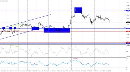 На часовом графике пара GBP/USD в понедельник выполнила закрепление над зоной 1,3595–1,3620 и