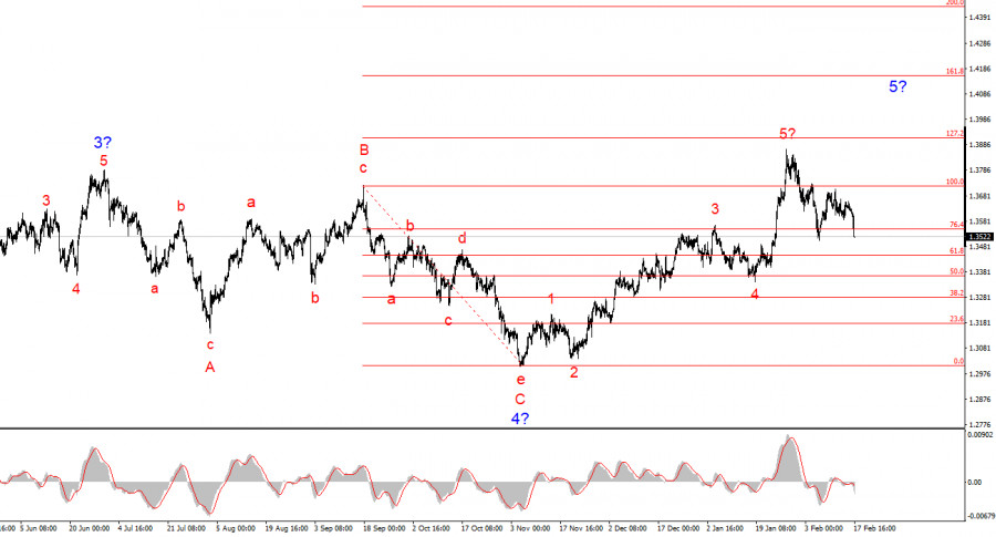Волновая картина инструмента GBP/USD имеет вполне понятный вид. Пятиволновая повышательная структура завершила свое построение, но глобальная волна 5 может принять гораздо более протяженный вид. Я считаю, что в ближайшее время может наблюдаться построение коррекционного набора волн, после чего возобновиться построение восходящего тренда. Следовательно, в ближайшие недели я могу посоветовать искать возможности для новых покупок. На мой взгляд, при Дональде Трампе фунт стерлингов имеет все шансы подняться до 1,45-1,50$. Сам Трамп приветствует снижение доллара, а ФРС имеет возможность уже на следующем заседании вновь понизить ставку.Основные принципы моего анализа: