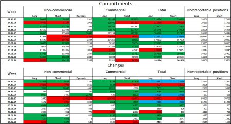 На 4-часовом графике пара выполнила отбой от уровня Фибо 127,2% – 1,3795 и с тех пор продолжается процесс падения в направлении зоны поддержки 1,3369–1,3435. «Медвежий» тренд на часовом графике не завершен. Отбой котировок от зоны поддержки 1,3369–1,3435 позволит рассчитывать на возобновление «бычьего» тренда в направлении уровня 1,3495. Назревающих дивергенций сегодня не наблюдается ни у одного индикатора. Отчет Commitments of Traders (COT):