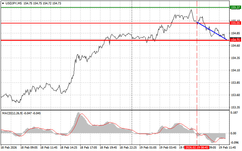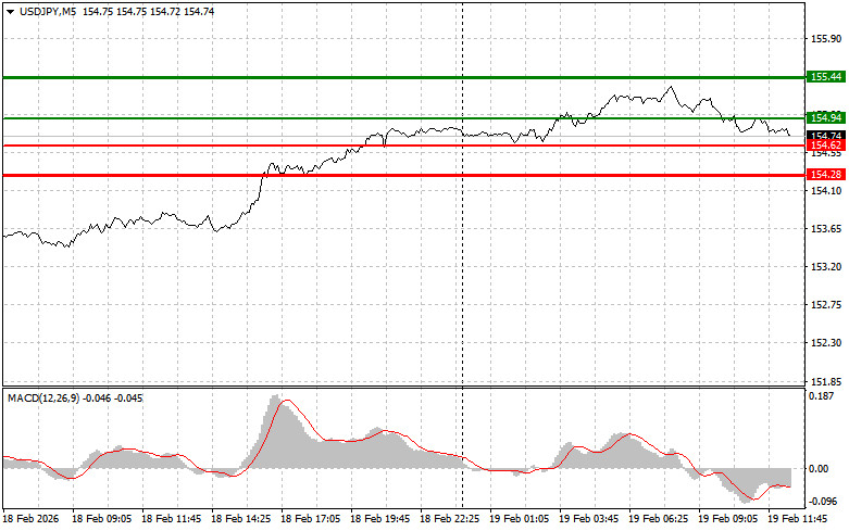 Разбор сделок и советы по торговле японской иенойТест цены 155.05 пришелся на момент, когда индикатор MACD только начинал движение вниз от нулевой отметки, что стало подтверждением правильной точки входа на продажу доллара. В результате пара снизилась в район 154.71.Сегодня все внимание будет на данных по заявкам на пособие по безработице, а также на выступлении представителей ФРС. Несмотря на свою периодичность, недельные заявки – это довольно чувствительный индикатор состояния рынка труда. Его увеличение может свидетельствовать об ухудшении общей экономической картины, на что ФРС обязательно обратит внимание. Стоит отметить, что в последнее время с этим показателем все в полном порядке, так что шансы на обратный рост доллара против иены имеются. Выступления членов FOMC Рафаэля Бостика и Нила Кашкари внесут дополнительный аналитический вес. Их комментарии относительно текущей экономической ситуации, инфляционных ожиданий и дальнейших шагов в области денежно-кредитной политики будут тщательно анализироваться участниками рынка. Зачастую такие выступления содержат намеки на потенциальные решения Федеральной резервной системы, что делает их ценным источником информации для трейдеров при принятии решений.Что касается внутридневной стратегии, то больше буду опираться на реализацию сценариев №1 и №2.Сигнал на покупкуСценарий №1: покупать USD/JPY сегодня планирую при достижении точки входа в районе 154.94 (зеленая линия на графике) с целью роста к уровню 155.44 (более толстая зеленая линия на графике). В районе 155.44 буду выходить из покупок и открывать продажи в обратную сторону (расчет на движение в 30-35 пунктов в обратную сторону от уровня). Рассчитывать на рост пары сегодня можно после жесткой позиции ФРС. Важно! Перед покупкой, убедитесь в том, что индикатор MACD находится выше нулевой отметки и только начинает свой рост от нее.Сценарий №2: покупать USD/JPY сегодня также планирую в случае двух подряд тестов цены 154.62 в момент, когда индикатор MACD будет находиться в области перепроданности. Это ограничит нисходящий потенциал пары и приведет к обратному развороту рынка вверх. Можно ожидать рост к противоположным уровням 154.94 и 155.44.Сигнал на продажу Сценарий №1: продавать USD/JPY сегодня планирую после обновления уровня 154.62 (красная линия на графике), что приведет к быстрому снижению пары. Ключевой целью продавцов будет уровень 154.28, где буду выходить из продаж, а также открывать сразу покупки в обратную сторону (расчет на движение в 20-25 пунктов в обратную сторону от уровня). Давление на пару вернется в случае слабых отчетов. Важно! Перед продажей, убедитесь в том, что индикатор MACD находится ниже нулевой отметки и только начинает свое снижение от нее. Сценарий №2: продавать USD/JPY сегодня также планирую в случае двух подряд тестов цены 154.94 в момент, когда индикатор MACD будет находиться в области перекупленности. Это ограничит восходящий потенциал пары и приведет к обратному развороту рынка вниз. Можно ожидать снижения к противоположному уровню 154.62 и 154.28.Что на графике:Тонкая зеленая линия – цена входа, по которой можно покупать торговый инструмент;Толстая зеленая линия – предположительная цена, где можно расставлять Take Profit или самостоятельно фиксировать прибыль, так как выше этого уровня дальнейший рост маловероятен;Тонкая красная линия – цена входа,
