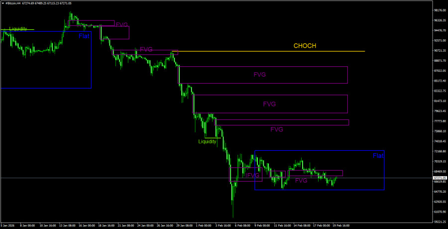 Торговые рекомендации по Биткоину(Bitcoin) на 20 февраля по системе ICT.