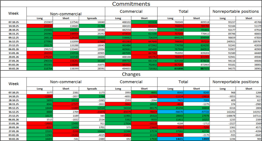 В течение последней отчетной недели профессиональные игроки открыли 16403 Long-контракта и закрыли 541 контракт Short. Настроение группы «Non-commercial» остается «бычьим» благодаря Дональду Трампу и его политике, и только усиливается с течением времени. Общее количество контрактов Long, сосредоточенных на руках спекулянтов, теперь составляет 319 тысяч, а контрактов Short – 138 тысяч. Это более, чем двукратное преимущество быков. Тридцать три недели подряд крупные игроки избавлялись от Short-позиций и наращивали Long. Затем начался «шатдаун», но сейчас мы наблюдаем ту же самую картину: профессиональные трейдеры продолжают наращивать Long-позиции. Политика Дональда Трампа остается наиболее весомым фактором для трейдеров, так как вызывает множество проблем, которые будут иметь долгосрочный и структурный характер для Америки. Например, серьезное ухудшение рынка труда(2025 год), снижение мировой репутации. Трейдеры опасаются также потери независимости ФРС в 2026 году и геополитических амбиций Дональда Трампа. Календарь новостей для США и Евросоюза: Евросоюз – Выступление президента ЕЦБ Кристин Лагард (00-00 UTC). Евросоюз – Индекс деловой активности в секторе производства Германии (08-30 UTC). Евросоюз – Индекс деловой активности в секторе услуг Германии (08-30 UTC). Евросоюз – Индекс деловой активности в секторе производства (09-00 UTC). Евросоюз – Индекс деловой активности в секторе услуг (09-00 UTC). США – Базовый индекс цен на личное потребление (13-30 UTC). США – Изменение объема ВВП в четвертом квартале (13-30 UTC). США – Личные доходы/расходы (13-30 UTC). США – Индекс деловой активности в секторе производства (14-45 UTC). США – Индекс деловой активности в секторе услуг (14-45 UTC). 20 февраля календарь экономических событий содержит в себе множество записей, среди которых выделяют индексы деловой активности в ЕС и ВВП США. Влияние информационного фона на настроение рынка в пятницу может присутствовать в течение всего дня. Прогноз по EUR/USD и советы трейдерам: Продажи пары были возможны при закрытии на часовом графике под уровнем 1,1889 с целью 1,1830. Цель была отработана. Следующие продажи были возможны при закрытии под уровнем 1,1830 с целью 1,1770. Цель также была достигнута. Эти сделки можно держать открытыми в пятницу с целью 1,1696. Покупки станут возможными при закреплении на часовом графике над уровнем 1,1770 с целью 1,1830. Сетки уровней Фибоначчи построены по 1,1805–1,1578 на часовом графике и по 1,1919–1,1471 на 4-часовом.Материал предоставлен компанией InstaForex - www.instaforex.com