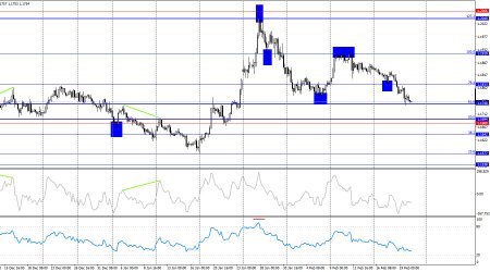 Пара EUR/USD в течение четверга продолжала процесс падения и выполнила закрепление под уровнем коррекции 61,8% – 1,1770, что позволяет теперь рассчитывать на продолжение падения в направлении следующего коррекционного уровня 76,4% – 1,1696. Закрепление курса пары над уровнем 1,1770 сработает в пользу европейской валюты и некоторого роста в направлении уровня Фибо 50,0% – 1,1830.