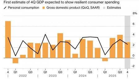 Рынки активно искали проигравших от внедрения искусственного интеллекта. Однако что если нужно посмотреть на ситуацию под другим углом? Колоссальные инвестиции технологических гигантов в ИИ поддерживают как всю экономику, так и компании других секторов. Искусственный интеллект приносит пользу, что подчеркивают и чиновники FOMC. Так, президент ФРБ Сан-Франциско Мэри Дейли отметила, что Центробанк не должен сдерживать спровоцированный ИИ экономический рост при помощи слишком высоких ставок. С другой стороны, влияние новых технологий на инфляцию пока точно не определено. Высокие уровни потребительских цен являются сдерживающим фактором для ослабления денежно-кредитной политики. Ротация пробуждает интерес к тем компаниям, которые, по словам Morgan Stanley, долгое время находились в рецессии. Только сейчас они начинают испытывать повышенный спрос. Это обусловлено чувствительностью к экономике США. Сила последней позволяет инвесторов диверсифицировать портфели в пользу вчерашних аутсайдеров. Масла в огонь их покупок может подлить позитив по американскому ВВП за четвертый квартал. Динамика американской экономики